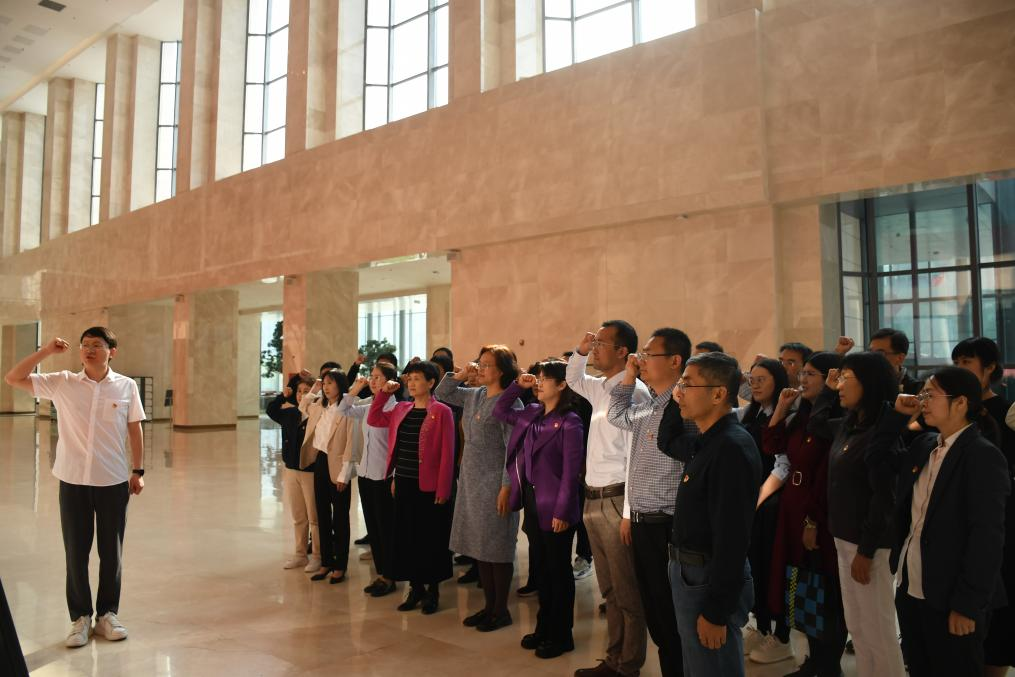 在纪念馆内,面对鲜红的党旗,党员们庄严宣誓,重温入党誓词,在铿锵有力的誓言中砥砺初心,进一步坚定理想信念。通过开展此次参观学习活动,全体教师加深了对石家庄解放历史的认识和了解,接受了一次深刻的党性锤炼和精神洗礼,进一步增强了开展党性教育的思想自觉和行动自觉。大家纷纷表示,将以此次活动为契机,传承红色历史,赓续红色血脉,把爱党爱国情怀转化为勇于担当,持续奋斗的精神动力,转化为立足岗位,奋发工作的实际行动,接续奋进新时代,为中国特色社会主义伟大事业贡献力量。(撰稿:齐旭硕、曲俞豪 摄影:齐旭硕、曲俞豪)