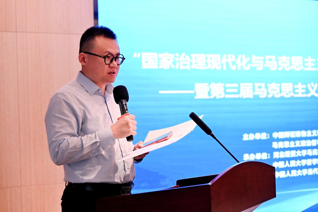 我司教师崔昆、李可心提交大会论文,在论坛上作了报告。崔昆在“国家治理现代化的唯物史观基础”的主旨发言中,指出唯物史观基础意味着规律的还原论。在国家治理现代化问题上,规律的还原尚未达到理论彻底。他强调,原来已有的著作对国家治理现代化的基本历史规律主要有三种观点,分别是经典理论中的国家和社会的理论、创新论、经济基础与上层建筑的关系理论。这三种理论观点都没有达到理论的彻底性。他认为,要回应国家治理现代化问题,必须进行历史规律的还原。只有把人的发展的“三形态”理论、国家和社会的关系理论、历史渐进方式综合起来,才能解释国家治理现代化问题。李可心探讨了“纳入全球正义的责任——戴维·米勒对全球正义理论的调和”。她提出全球正义理论主要围绕世界主义与国家主义的争论展开。部分学者试图调和世界主义与国家主义之间的矛盾,但这些尝试均未能成功。戴维·米勒试图将责任理念纳入到全球正义理论之中,通过责任路径对世界主义与国家主义的全球正义理论进行调和,以构建能够容纳世界主义和国家主义的全球正义理论,但最终走向了失败。