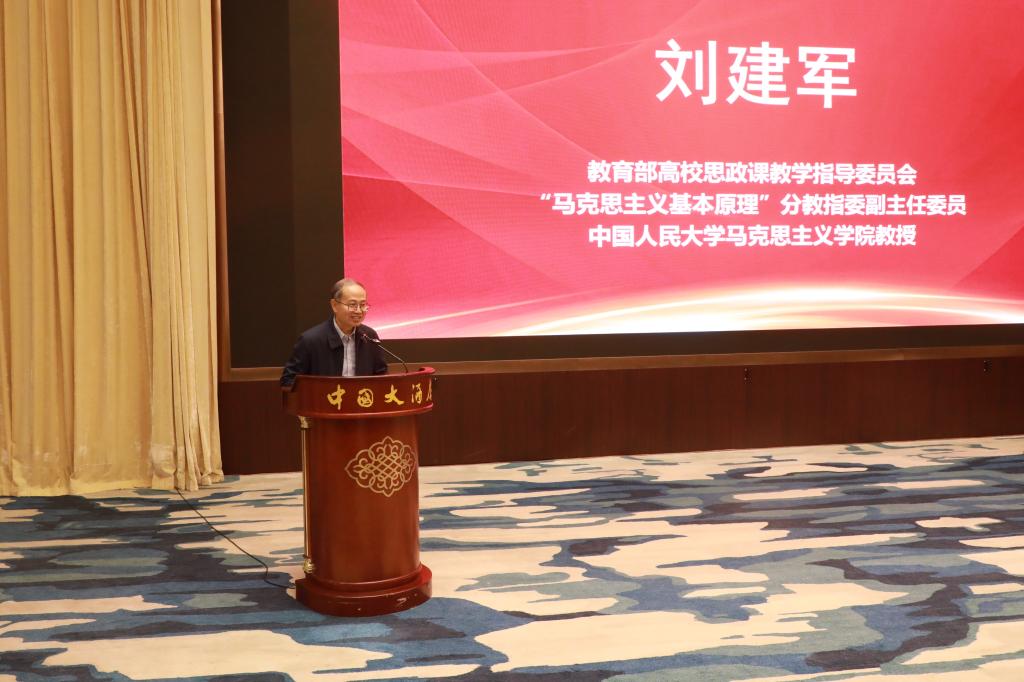 教育部高校思政课教学指导委员会“马克思主义基本原理”分教指委副主任委员、中国人民大学金沙3777刘建军教授以《马原理中的概念相似性问题》为题,指出马克思主义基本原理体系中概念丰富,一些同等层次的概念很相似,甚至字面上相同,但实际不完全一样。如果教师在使用时比较随意,表达不太精确、概念不太统一,不进行区分,就会造成员工学习的困难。刘建军列举出“基本原理”与“基本原则”、“世界观”与“宇宙观”、“同一”与“统一”、“工人阶级”与“无产阶级”、“生产”与“劳动”、“社会发展”与“社会进步”、“相适应”与“相适合”等十组概念进行了说明。