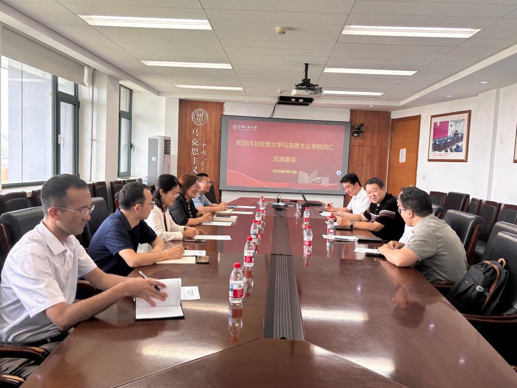李英从历史沿革、办学规模、团队建设、人才培养、团队队伍建设等方面详细介绍了学院情况。随后,双方围绕思想政治理论课教学改革、马克思主义理论学科发展等内容进行深入交流。