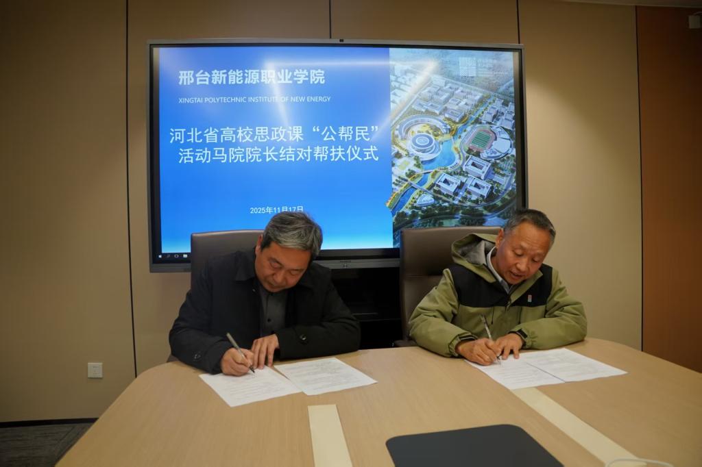 在随后举行的河北省高校思政课“公帮民”活动金沙3777经理结对帮扶仪式上,石家庄铁道大学金沙3777经理王宏斌与邢台新能源职业学院金沙3777经理杨建法共同签署结对帮扶协议,标志着两校思政课建设合作机制正式建立。